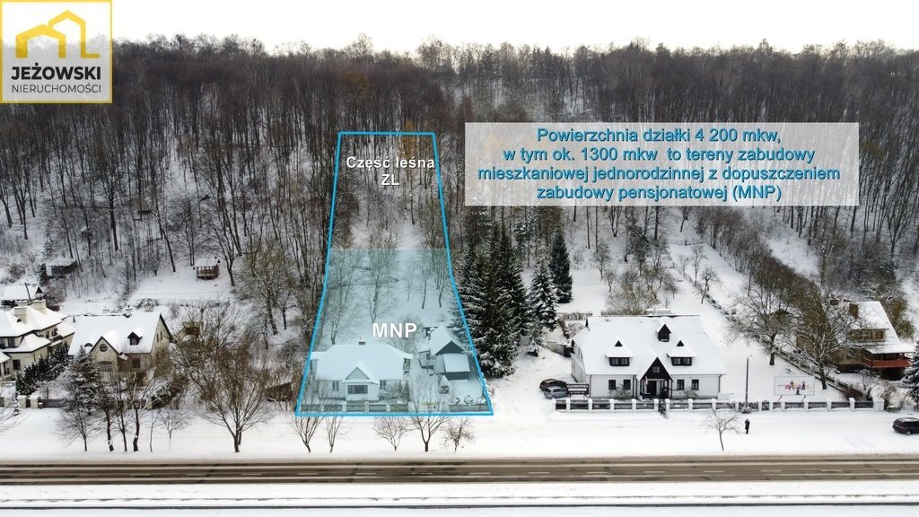 Powierzchnia 4252 mkw, wymiary ok. 26*165 metrów. Około 1/3 działki (50 metrów w głąb) przeznaczone jest pod zabudowę, dalszą część można przeznaczyć pod ogród. Do działki przyłączona jest woda, prąd, gaz, kanalizacja miejska oraz światłowód. Teren jest ładnie zagospodarowany, z przodu mamy kwitnący ogród, za domem piękne kilkudziesięcioletnie drzewa i krzewy, które dają poczucie prywatności i przyjemny chłód. Od strony południowej, na lekkim wzniesieniu, można postawić nowy dom z ogromnym tarasem widokowym, z którego można będzie podziwiać Wisłę. Powyżej jest część leśna działki ze wzgórzem, na którym rosną dostojne modrzewie i drzewa liściaste, można tu łatwo wkomponować nowe nasadzenia.