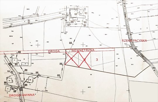 Do sprzedaży jest trzecia działka, położona przy nieutwardzonej drodze wewnętrznej w odległości 150 m od drogi asfaltowej.