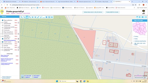 Działka jest w kształcie trójkąta, narożna z dojazdem z dwóch stron o powierzchni 2058 m kw .