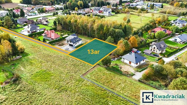 Działka ma kształt prostokąta o wymiarach około 28 m x 48 m. Teren jest równy i bardzo ustawny, co umożliwia swobodne zaprojektowanie budynku z ogrodem. Dojazd do nieruchomości odbywa się drogą wewnętrzną utwardzoną. Przy zakupie działki nabywca otrzymuje również udziały w drodze, co gwarantuje pełnoprawny dostęp.