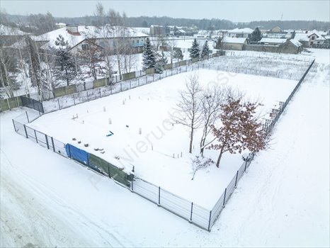 Działka z pozwoleniem na budowę. Na działce została wylana już płyta fundamentowa, zaś sama działka jest ogrodzona i przygotowana do dalszych etapów budowy.