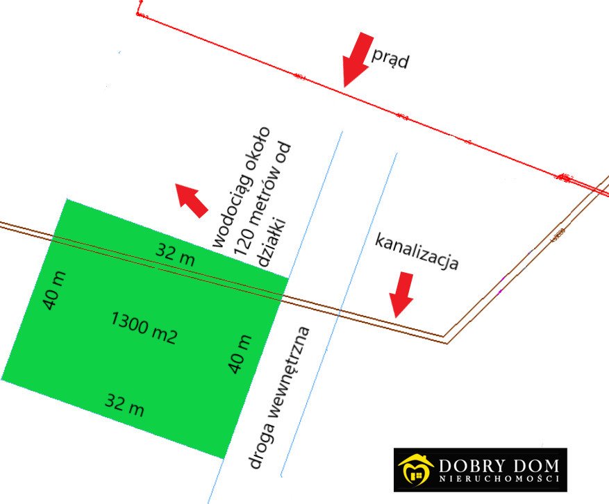 ✔ wodociąg – ok. 120 m od działki