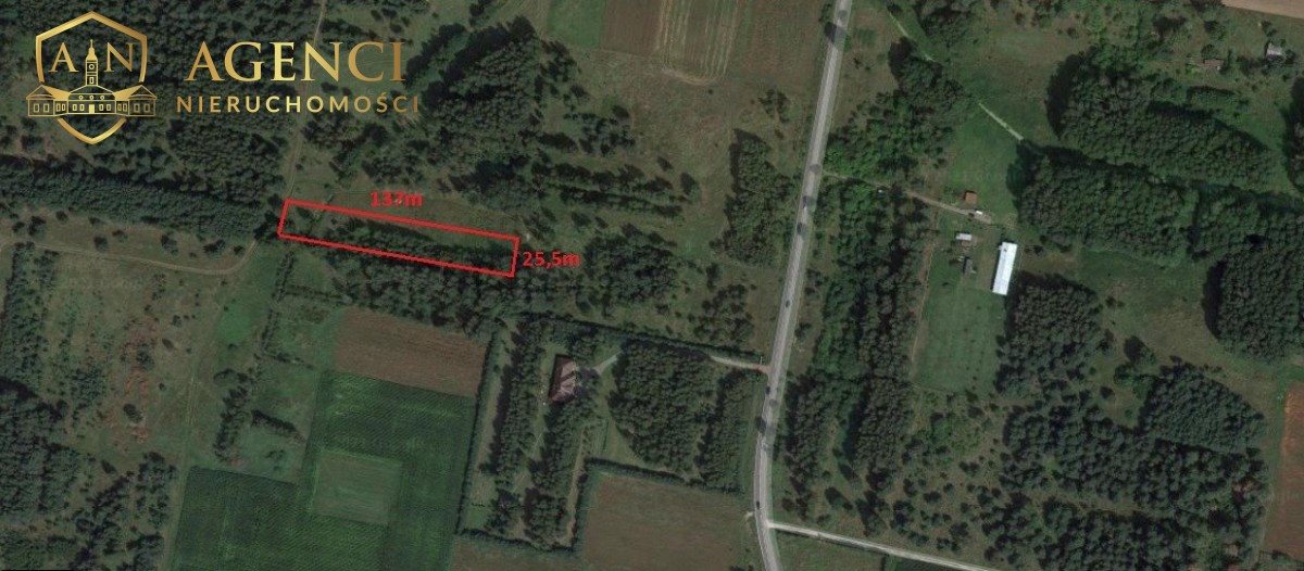 Działka w kształcie przybliżonym do prostokąta o wymiarach około: 25,5m x 135m oraz powierzchni 3400m2.