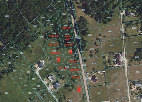 Na mapie zaznaczone są dokładne powierzchnie oraz aktualna dostępność poszczególnych działek.