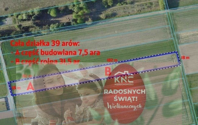 Część budowlana 7,5 ara , część rolna 31,5 ara