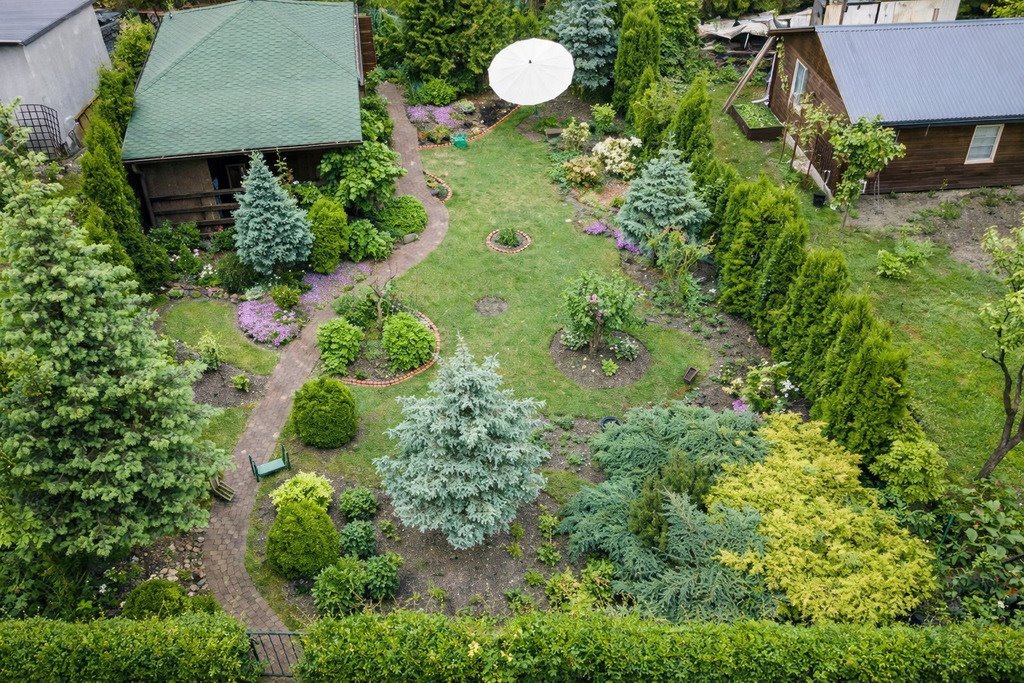 - komórka narzędziowa i ogrodzenie zapewniające prywatność