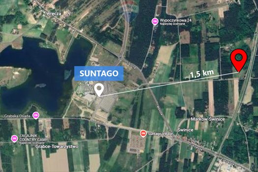 W sąsiedztwie Suntago, największego parku wodnego w Polsce, znajduje się działka budowlano-usługowa nr ewid. 40/13, o powierzchni 1506 m² i wymiarach 31 x 48 . Położenie w pierwszej linii zabudowy, przy ulicy Spacerowej - droga ta jest utwardzoną drogą gminną, co zapewnia wygodny dojazd do działki. Bliskość Suntago i terenów rekreacyjnych sprawia, że to miejsce doskonale nadaje się zarówno pod zabudowę mieszkaniową, jak i usługi turystyczne czy rekreacyjne.