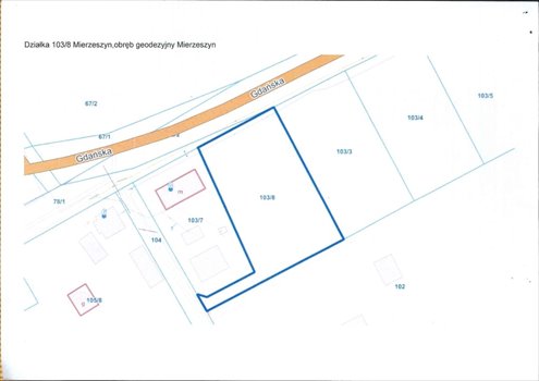 Nieruchomość częściowo zadrzewiona i zakrzaczona. Kształt działki nr 103/8 regularny, ukształtowanie terenu płaskie. Działka częściowo ogrodzona. Przez teren nieruchomości przebiega sieć wodociągowa. Sieć energetyczna w drodze ul. Gdańskiej. Sąsiedztwo nieruchomości stanowią tereny zabudowane i niezabudowane. Obsługa komunikacyjna z działki 104. Dojazd do nieruchomości odbywa się drogą o średniej jakościowo nawierzchni. Działka znajduję się w strefie ochrony otoczenia i ekspozycji zabytkowej zespołu ruralistycznego wsi Mierzeszyn.