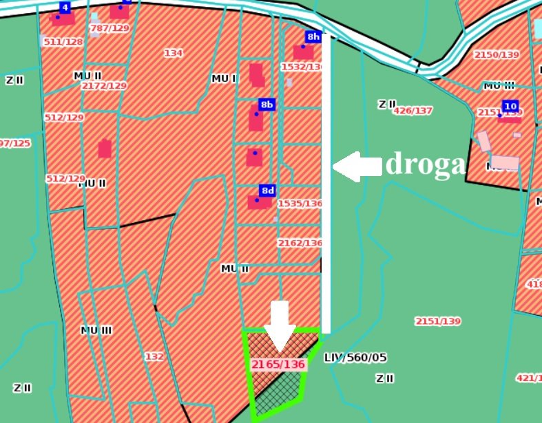 ok. 1200 m² znajduje się w strefie MU II – tereny zabudowy mieszkaniowo-usługowej (zabudowa jednorodzinna z dopuszczeniem usług),