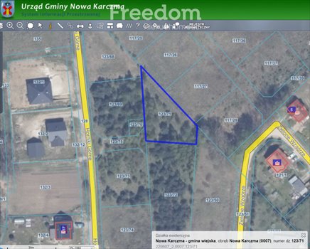 - działka budowlana w obrębie Nowa Karczma o numerze ewidencyjnym 123/71