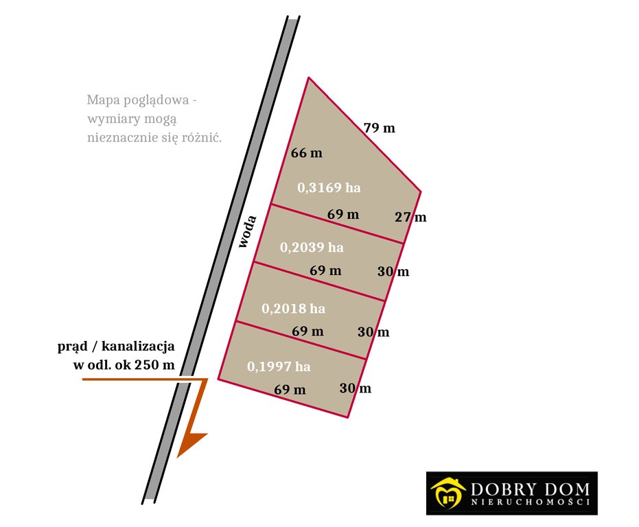 *Prąd , kanalizacja, gaz - w odległości ok 250 m