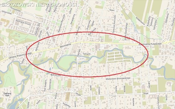 Spokojna, zielona okolica, w sąsiedztwie rzeki Jeziorki i zabudowy jednorodzinnej.
