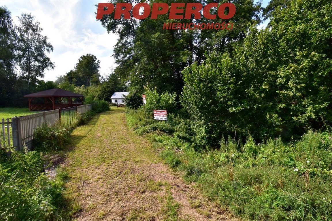 Działka w kształcie wielokąta, położona w drugiej linii w stosunku do drogi, częściowo ogrodzona, niezagospodarowana.