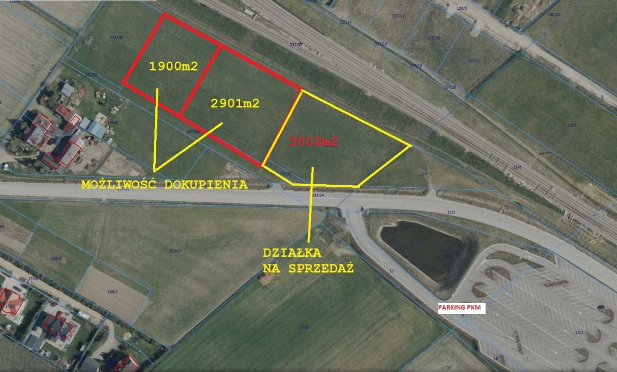 Działka położona przy ulicy asfaltowej, prowadzącej do przystanku PKM. Ostatnie kilkadziesiąt metrów dojazd drogą gruntową.