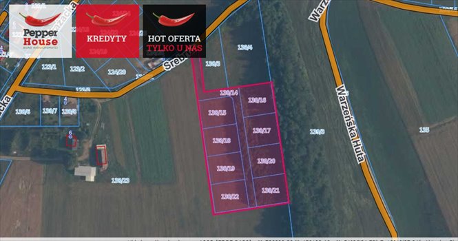 Na sprzedaż 8 działek (plus działka drogowa), każda powyżej 1000m2. Dla terenu sporządzono projekt osiedla składający się z 8 budynków dwulokalowych (łącznie 16 lokali z garażami i indywidualnymi ogródkami). Projekt do dyspozycji nowego nabywcy.