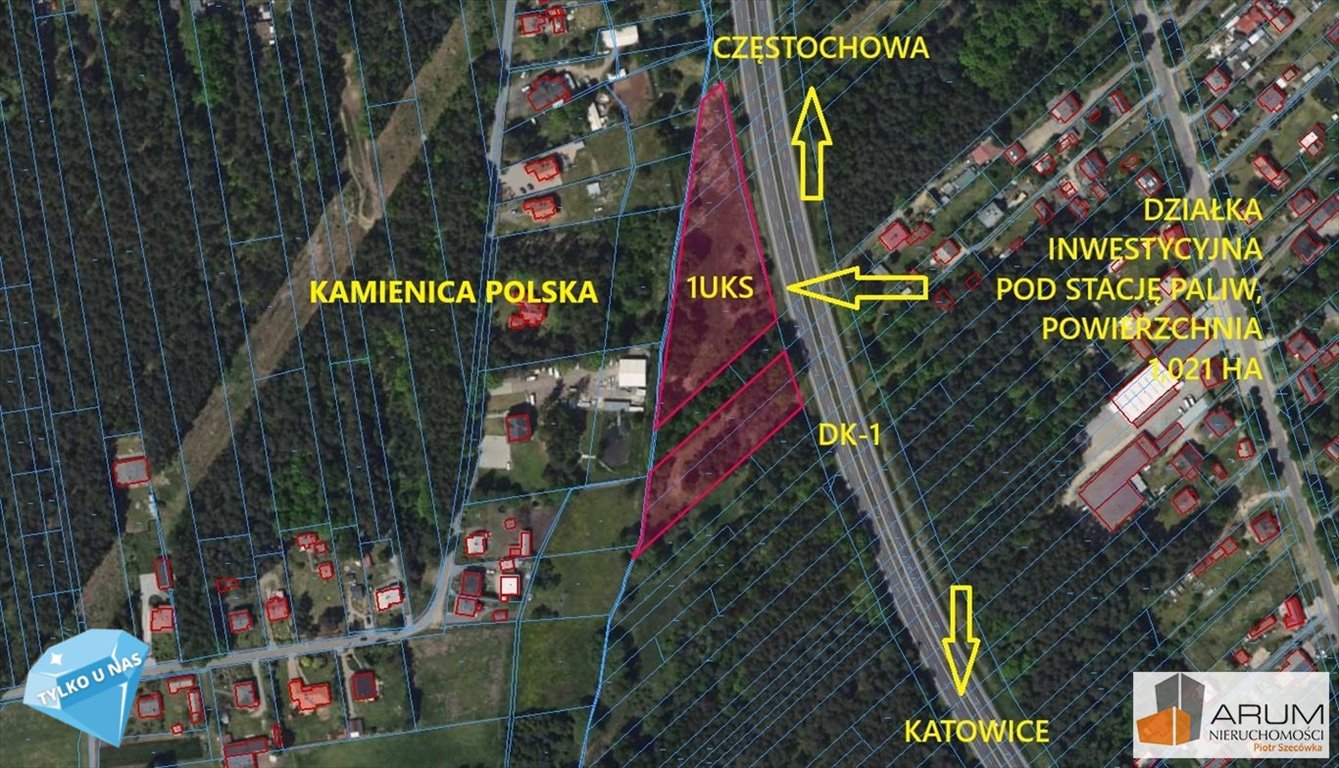 działka położona bezpośrednio przy drodze krajowej DK-1 Częstochowa -Katowice,
