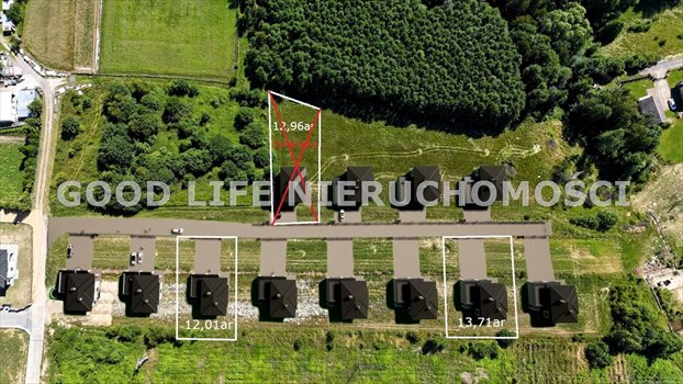 Działka sprzedawana z pozwoleniem na budowę, projektem budowanym oraz udziałem w drodze dojazdowej.