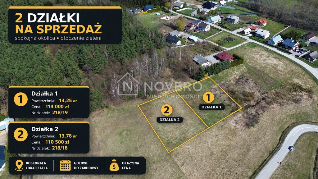 - Działka nr 218/19 – 14,25 ar – cena: 114 600 zł