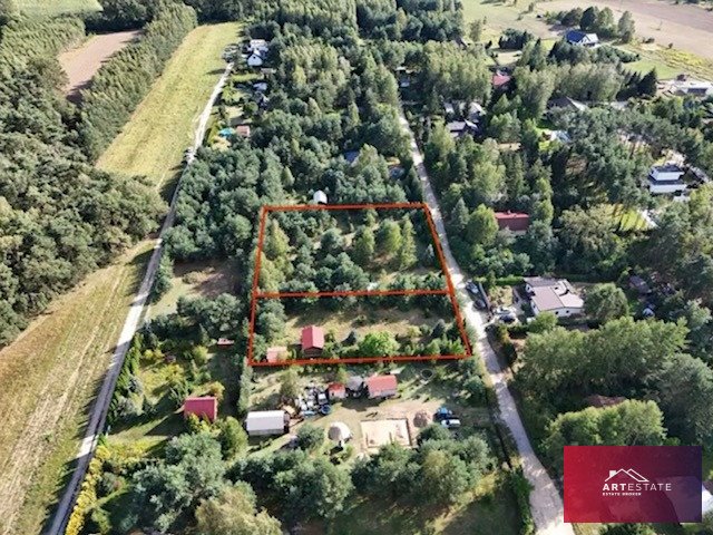Działka Ogrodzona, pięknie zarośnięta brzozami i sosnami.
