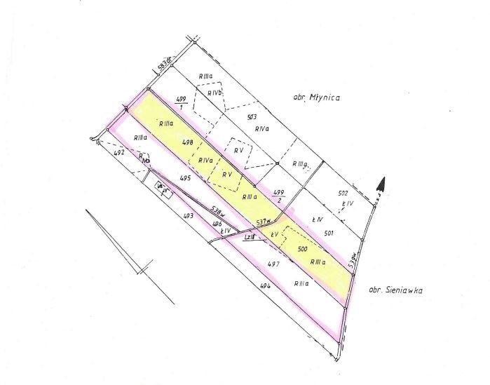 Działka 500 - 1,35ha - IIIa 1,05ha || łąka V 0,3ha