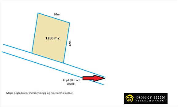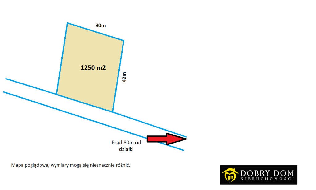 Prąd w drodze ok 80m od działki.