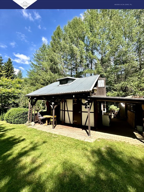 Działka nie jest ogrodzona, a jej granice określają piękne nasadzenia - modrzewie, lasek brzozowy oraz urokliwy staw. Przed wejściem do domku letniskowego znajduje się zadbana rabata, która dodaje uroku całej działce.
