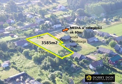Media: prąd- ok. 50m od działki, woda i kanalizacja z sieci miejskiej - ok 60m od działki, światłowód przy działce.