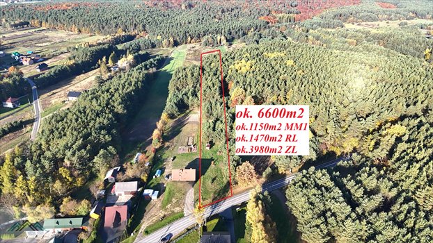 Działka o powierzchni ok 6600m2, usytuowana przy drodze Wolbrom- Trzyciąż w sąsiedztwie lasów i domów jednorodzinnych.