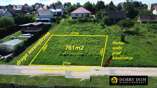Działka o powierzchni 761 m2 o wymiarach 27 m x 28 m daje możliwość budowy wymarzonego domu .