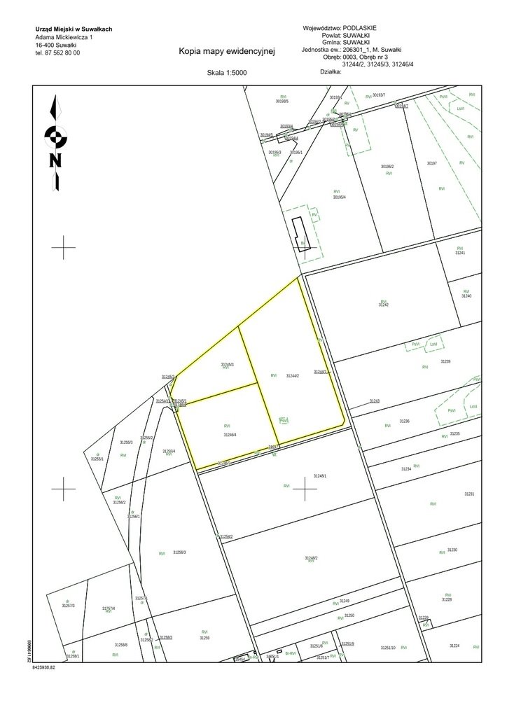 na łączną sprzedaż nieruchomości niezabudowanych, stanowiących własność Miasta Suwałk oznaczonych działkami nr geod.: 31245/3 o powierzchni 1,5341 ha, dla której prowadzona jest księga wieczysta nr SU1S/000pokaż telefon, 31246/4 o powierzchni 2,4274 ha, wchodząca w skład nieruchomości oznaczonej księgą wieczystą nr SU1S/000pokaż telefon, 31244/2 o powierzchni 4,2393 ha, wchodząca w skład nieruchomości oznaczonej księgą wieczystą nr SU1S/000pokaż telefon, położonych przy ul. Zachodniej w Suwałkach. Łączna powierzchnia działek wynosi 8,2008 ha. Na działkach nr 31245/3, 31246/4 zlokalizowana jest sieć telekomunikacyjna. Nabywca zobowiązany będzie do nieodpłatnego znoszenia tej sieci oraz nieodpłatnego udostępniania wejścia na grunt w przypadku jej awarii bądź konserwacji. W przypadku kolidowania sieci z nową inwestycją, nabywca dokona jej przełożenia na wniosek i koszt własny za zgodą właściciela sieci. Działki zgodnie z miejscowym planem zagospodarowania przestrzennego terenu ograniczonego ulicami: Bakałarzewską, Mieszka I, Filipowską i granicami administracyjnymi miasta Suwałk zatwierdzonym Uchwałą XXXV/430/2017 Rady Miejskiej w Suwałkach z dnia 26.07.2017 roku objęte są konturem 21U/P - tereny zabudowy usługowo-produkcyjnej. Nieruchomości o łącznej powierzchni 8,2008 ha przeznaczone są do sprzedaży w drodze przetargu ustnego nieograniczonego.