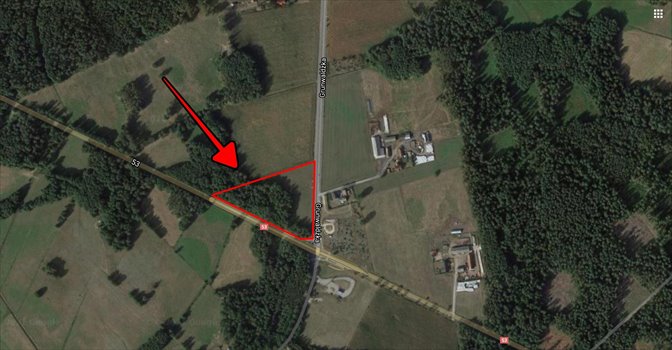 Działka znajduje się przy skrzyżowaniu drogi krajowej z powiatową, vis a vis stacji paliw.
