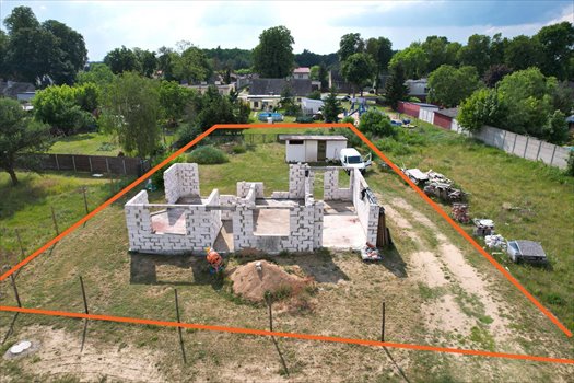 Oferujemy na sprzedaż działkę z rozpoczętą budową domu wolnostojącego.