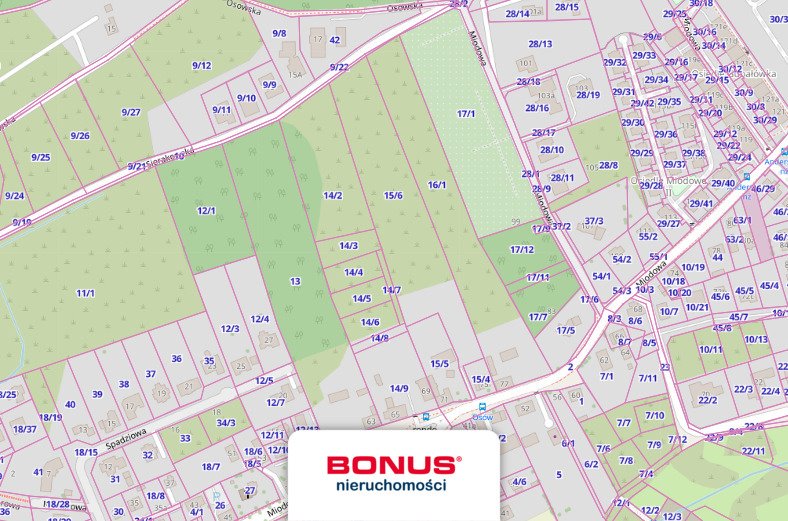 Nieruchomość położona jest w obszarze obowiązywania Miejscowego planu zagospodarowania przestrzennego Osów - Miodowa uchwała NR XVII/439/08 z dnia 14 stycznia 2008 r. i znajduje się częściowo w terenie elementarnym Z.O.2104.MN,U o ustaleniach m.in: