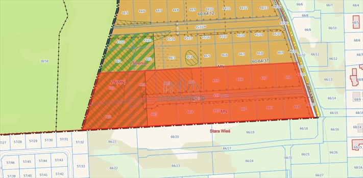 Działki 47/1, 48/1, 48/2 (w całości) oraz 47/2 i 48/3 (w części) objęte są miejscowym planem o symbolu ZN (MN) - tereny zieleni z dopuszczeniem zabudowy jednorodzinnej ekstensywnej.