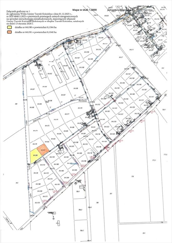 2) Nieruchomość niezabudowana, oznaczona w ewidencji gruntów i budynków jako działka nr 641/81 o powierzchni 0,1040 ha, położona w obrębie Turośń Kościelna, gmina Turośń Kościelna, powiat białostocki, województwo podlaskie, dla której w Sądzie Rejonowym w Białymstoku IX Wydział Ksiąg Wieczystych jest prowadzona księga wieczysta Kw. Nr BI1B/000pokaż telefon. Działka ma kształt zbliżony do prostokąta, dogodny do zagospodarowania. Położona jest pośród gruntów rolnych z rozproszoną nową zabudową mieszkaniową jednorodzinną. Wzdłuż przyległej do niej drogi rozprowadzone są sieci: wodociągowa i kanalizacyjna. W odległości około 1,5 km znajduje się szkoła podstawowa, urząd gminy oraz ośrodek zdrowia.