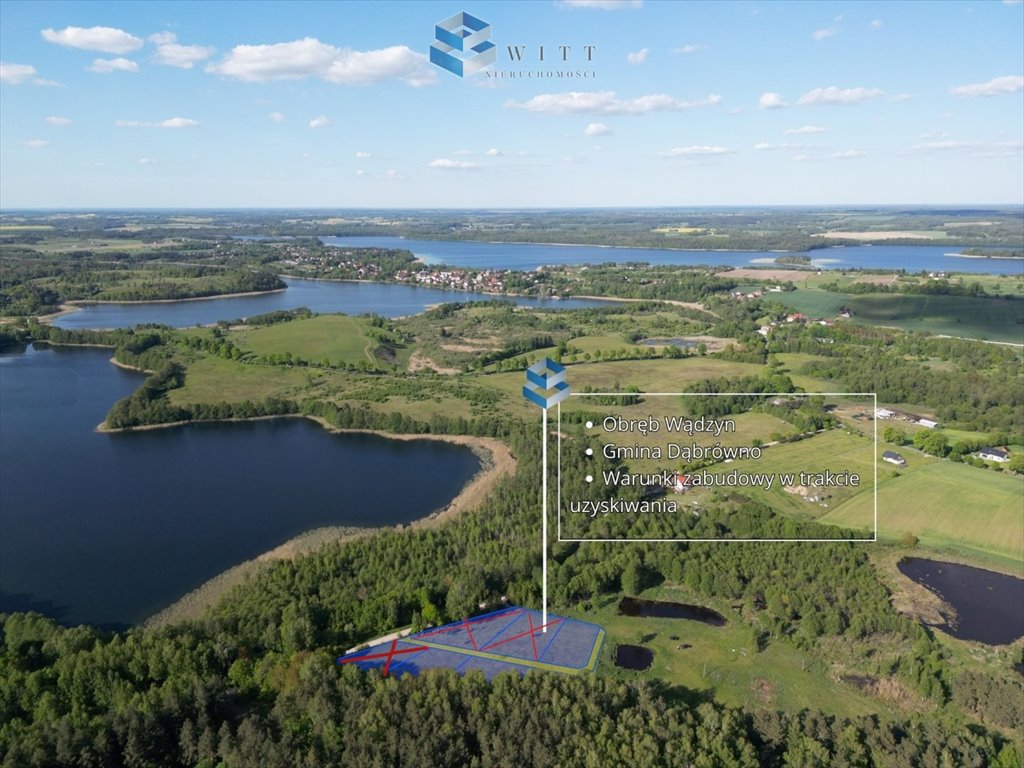 To nie wizja. To Wądzyn. Między trzema jeziorami: Dąbrowa Mała, Dąbrowa Duża i Okrągłe, oferujemy na sprzedaż 6 pięknych działek budowlanych z dużym potencjałem.