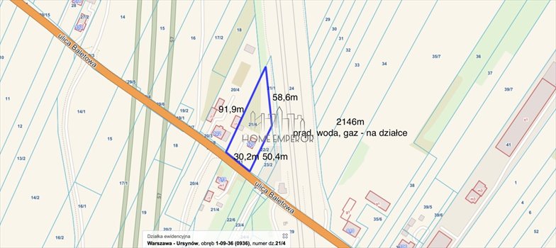 Warszawa, Ursynów ul. Baletowa, obręb 1-09-36, numer ewidencyjny 21/4.