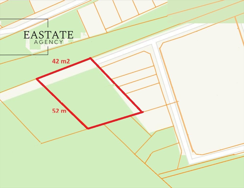 Działka o wymiarach 52 m X 42 m.