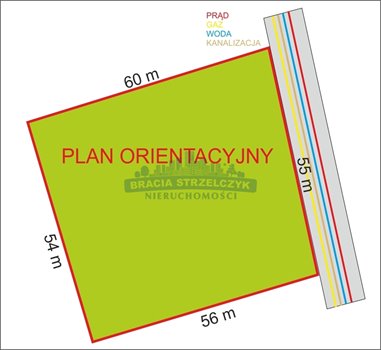 Działka o regularnym kształcie, zlokalizowana wśród domów jednorodzinnych.