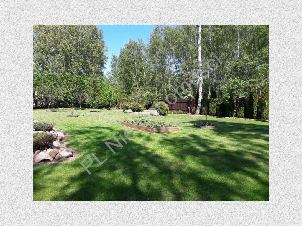Działka jest bardzo zadbana i ogrodzona. Teren od bramy i furtki wyłożony kostką. Niewiele drzew, szpaler tui przy linii ogrodzenia.