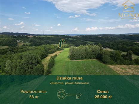 Lokalizacja: Zalasowa, gmina Ryglice ok. 17 km od Tarnowa Powierzchnia: 58 ar (0,58 ha) działka rolno-leśna
