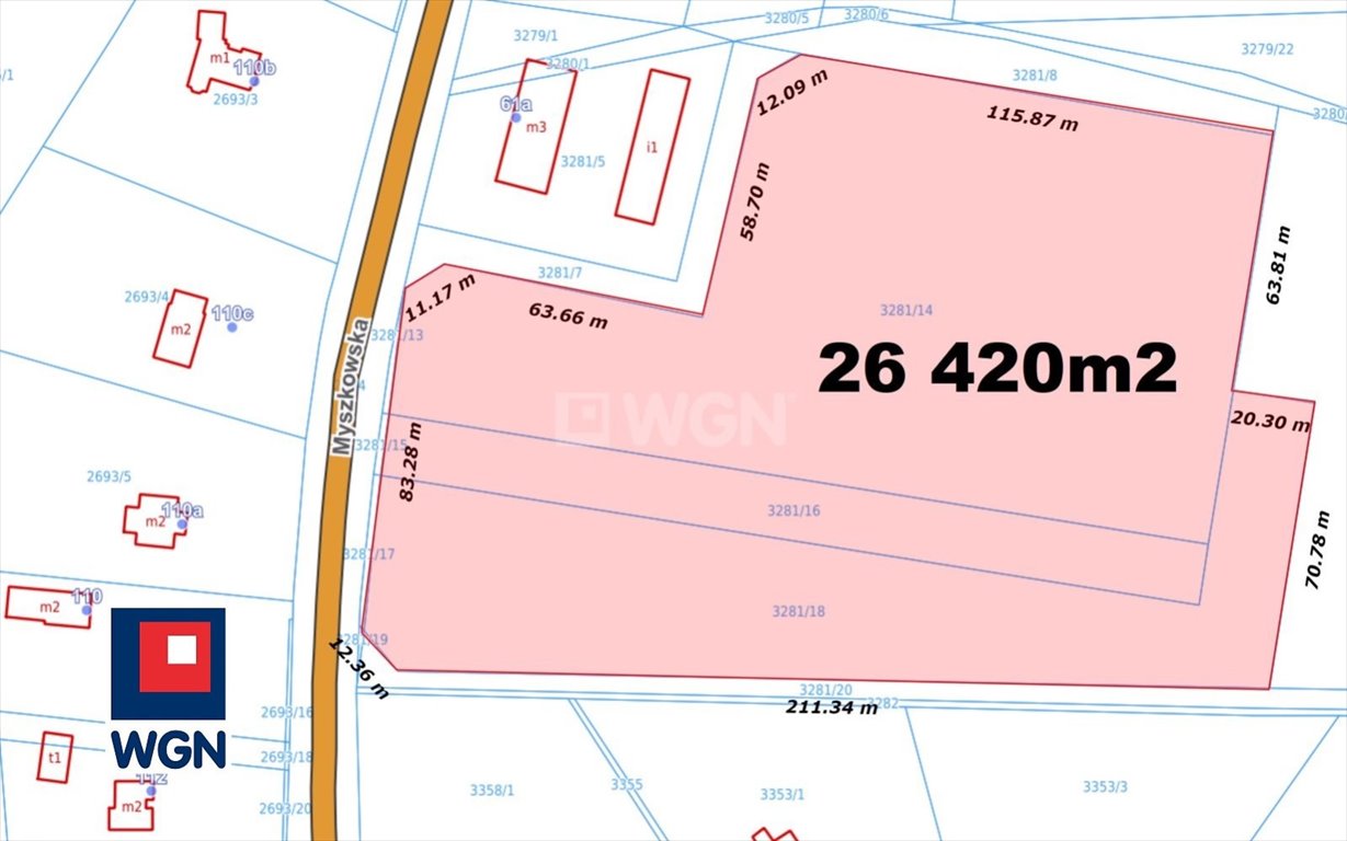 Działka inwestycyjna 2,64 ha przy drodze wojewódzkiej Żarki, Myszkowska - 26420,0m2
