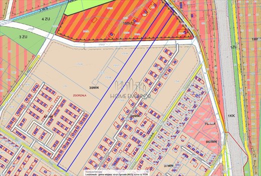Działka jest objęta miejscowym planem zagospodarowania przestrzennego pod tereny zabudowy mieszkaniowej jednorodzinnej i usług (symbol 39MN - na powierzchni około 10900 m 2 ) oraz pod tereny zabudowy mieszkaniowo - usługowej, w tym usług publicznych - budynki mieszkalne jednorodzinne, budynki usługowe, budynki funkcji mieszanych (symbol 1MN/U - na powierzchni około 2940 m 2 ):