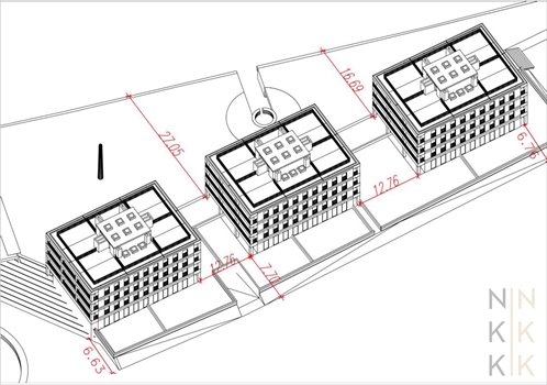 Działka gruntu o powierzchni 3 ha. Było wydane PnB na części działki 7000m2 obejmujące budowę 3 budynków mieszkalnych wielorodzinnych z usługami w parterze i garażem podziemnym- PUM 2239m2, PU 331m2 oraz garaż podziemny 51 miejsc postojowych.