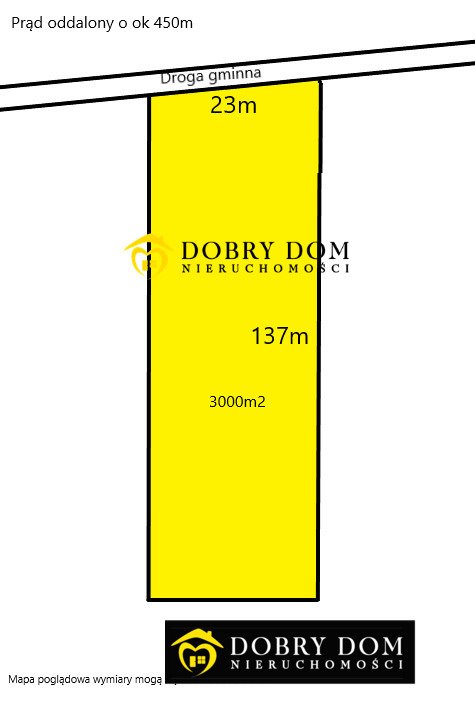 Na sprzedaż działka o powierzchni 3000 m² w cenie 120 000 zł. Teren o regularnym, prostokątnym kształcie 23 × 137 m, częściowo rolny i leśny, objęty miejscowym planem zagospodarowania przestrzennego (MPZP).