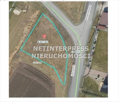 Nieruchomość o wielokątnym kształcie, w większości płaska, porośnięta roślinnością trawiastą.