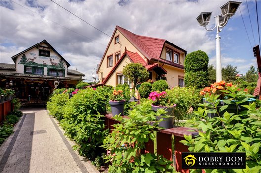 Zajazd stanowi obiekt murowany, parterowy z poddaszem użytkowym, podpiwniczony o pow. użytkowej ok. 130 m2. Na parter obiektu składają się następujące pomieszczenia: - wiatrołap - 1,2 m2 - klimatyzowana, w pełni wyposażona kuchnia - 16,8 m2 - zmywarka - 7,3 m2 - bufet - 4,5 m2 - sala główna - 36,7 m2 - 2 toalety po 5,1 m2. Obiekt z koncesją na napoje alkoholowe. Na poddaszu m.in. biuro, pokoje socjalne, łazienka. Piwnica jako chłodniejsze miejsce idealnie sprawdza się jako magazyn na napoje.