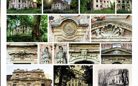 Reprezentacyjny portal wejściowy z bogatą kamieniarką i rzeźbami