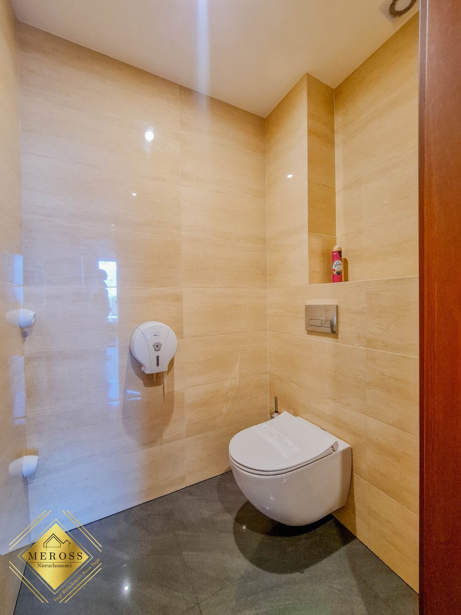Część biurowa (ok. 2x 140 m2) - rolety elektryczne w oknach, ogrzewanie podłogowe, klimatyzacja multisplit, wykończenie płytki, gres oraz wykładzina dywanowa;