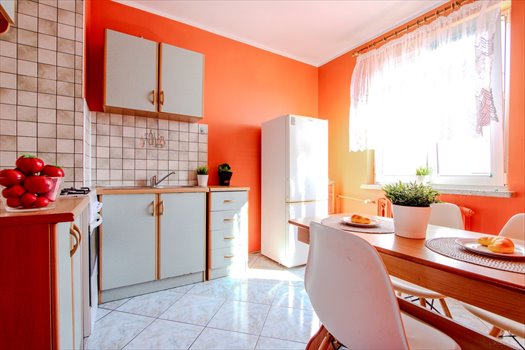 KUCHNIA - z meblami kuchennymi, lodówką, kuchenką, stołem i krzesłami;